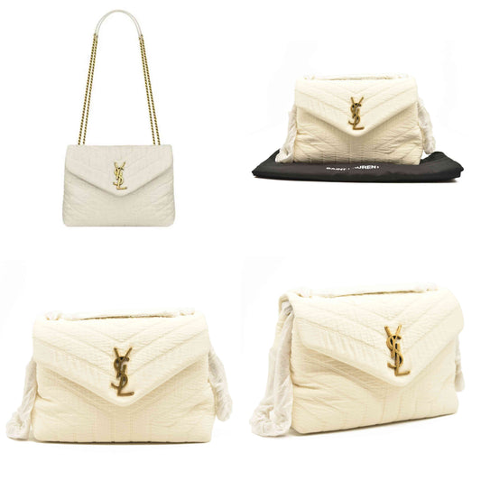SAINT LAURENT Cotton Quilted Monogram Small Loulou Shoulder Bag YSL