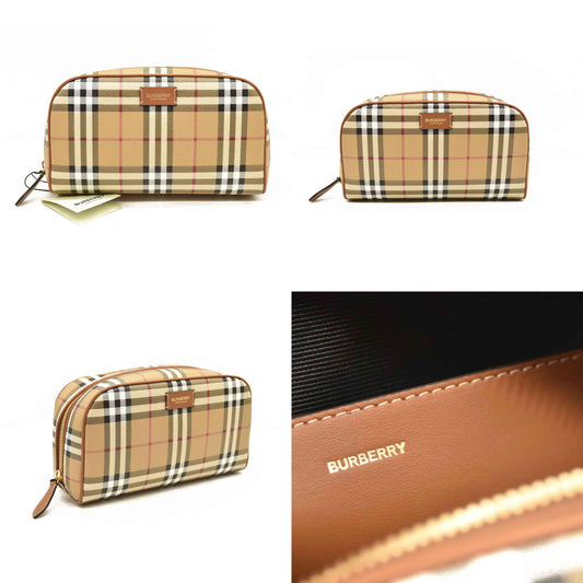 BURBERRY Beige Check Medium Cosmetic Travel Pouch