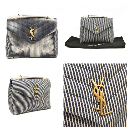 NEW Saint Laurent Loulou Small in Striped Denim Shoulder Bag Monogram