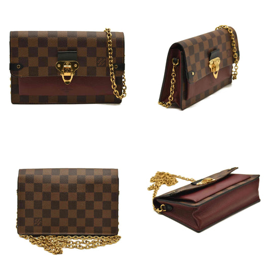 Louis Vuitton Damier Ebene Vavin Chain Wallet Red