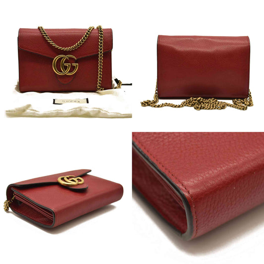 Gucci Calfskin GG Marmont Chain Wallet Vulcanic Red