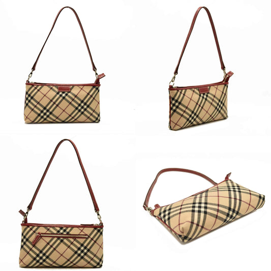 BURBERRY Nova Check Hand Bag Nylon Beige Black