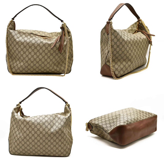 GUCCI GG Supreme Monogram Large Linea A Hobo Light Brown