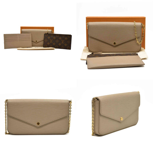 LOUIS VUITTON Epi Felicie Pochette Chain Wallet Galet RFID