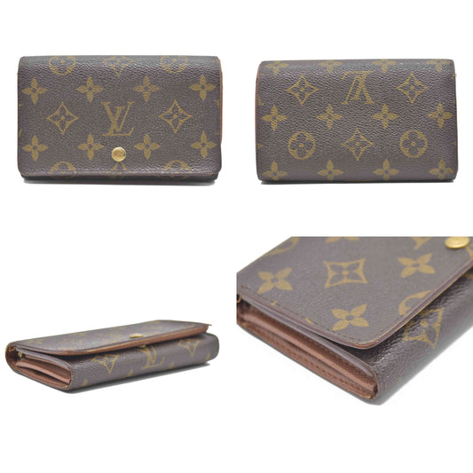 AUCTION $610 Louis Vuitton Monogram Porte Monnaie Zip Bifold Wallet Brown CA0947