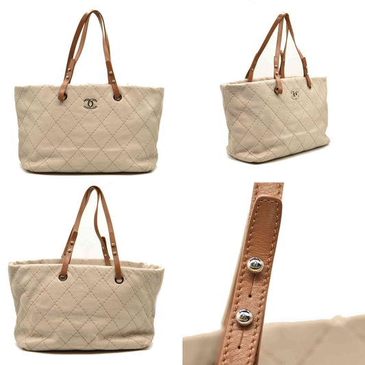 CHANEL Glazed Calfskin Large On The Road Tote Beige 15*