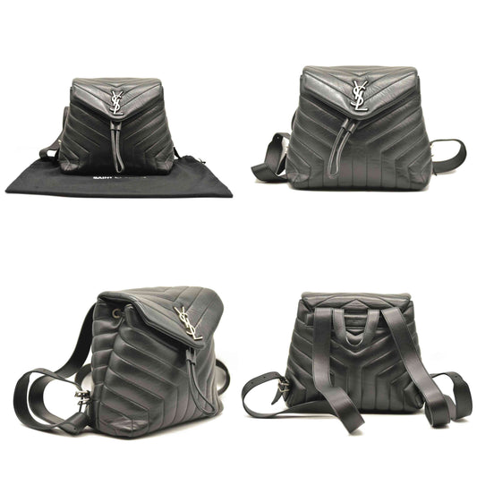 SAINT LAURENT Calfskin Y Quilted Monogram Small Loulou Backpack Black