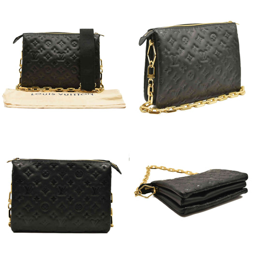 LOUIS VUITTON Lambskin Embossed Monogram Coussin PM Black