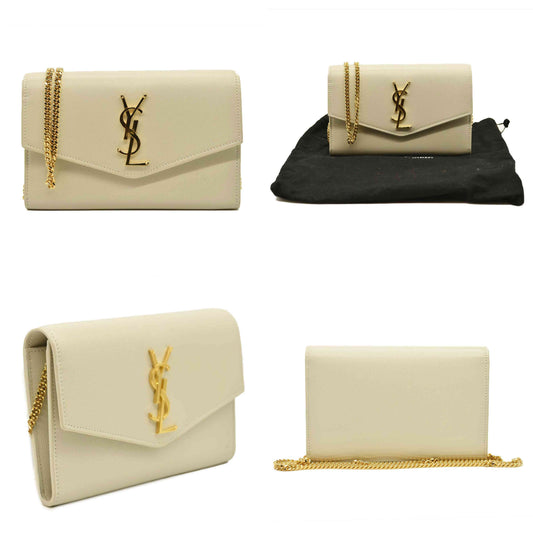 SAINT LAURENT Grain De Poudre Monogram Uptown Chain Wallet Crema Soft
