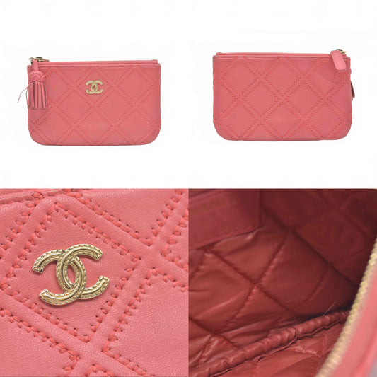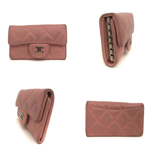 CHANEL Quilted Matelasse CC Logo Lambskin 6 Ring Key Case Pink 152382