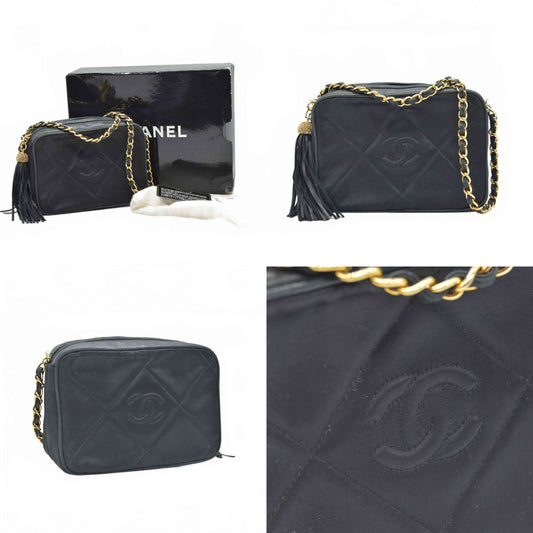 $3000 1988 Chanel Vintage Black Quilted Satin CC Tassel Camera Case
