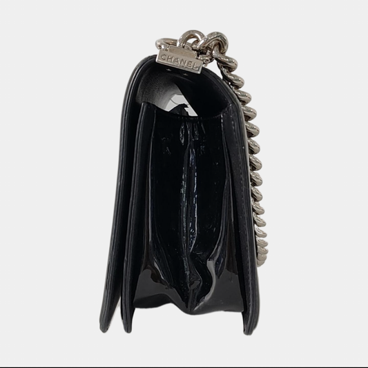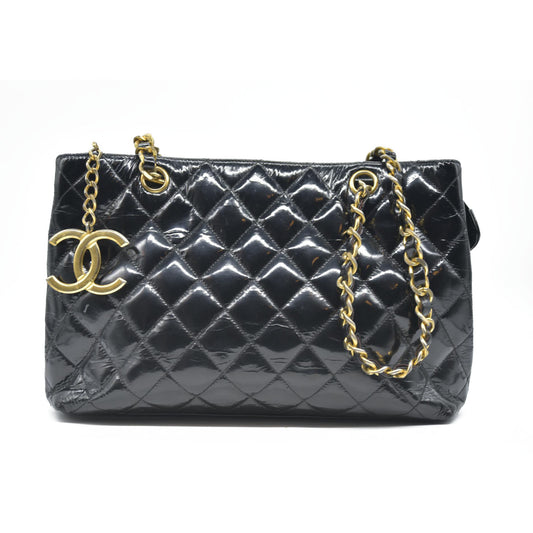 $3000 Chanel Patent Quilted Golden Class Wallet on Chain WOC Silver