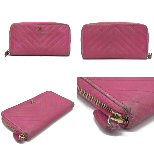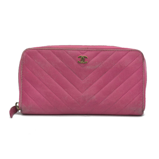 Chanel Caviar Chevron Large Gusset Zip Around Wallet Pink