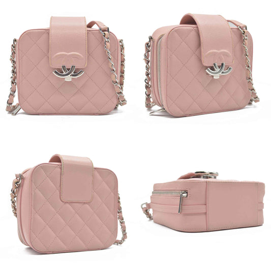 $2150 Chanel Caviar Quilted Round Filigree Crossbody Pink 2019