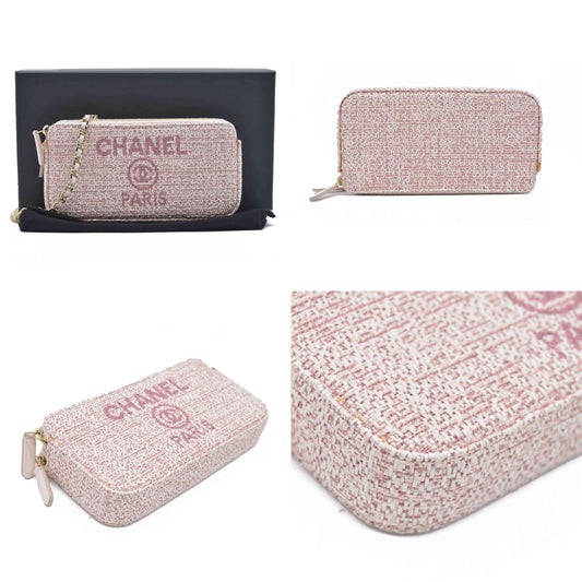 $4500 Chanel Canvas Small Deauville Clutch With Chain Pink