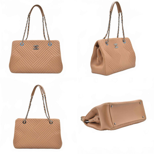 $4500 Chanel Wrinkled Lambskin Chevron Quilted Surpique Tote
