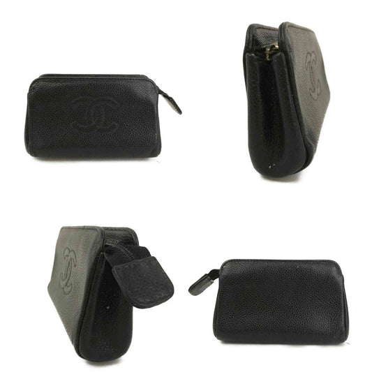 CHANEL CC Logo Grained Calfskin Cosmetic Pouch Bag Black