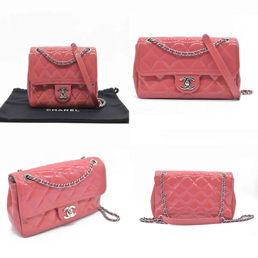 $4500 Chanel Patent Quilted Large Coco Shine Flap Pink Single Flap