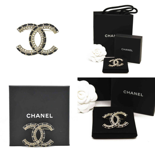 CHANEL Lambskin Chain CC Brooch Black Gold