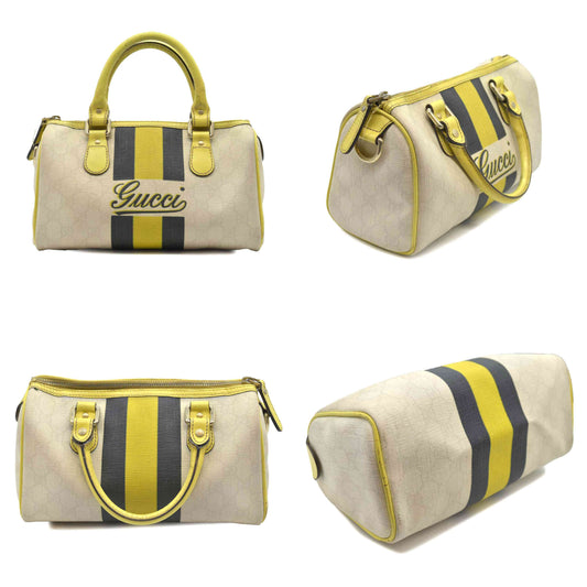 AUCTION $1500 Gucci GG Plus Monogram Web Stripe Small Joy Boston Yellow