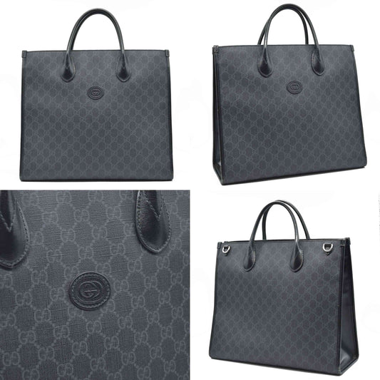 $2150 GUCCI GG Supreme Monogram Textured Dollar Calfskin Medium Retro Interlocking G Tote Bag in Black