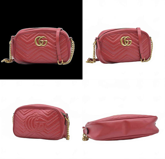 $1950 Gucci Calfskin Matelasse Small GG Marmont Chain Shoulder Bag Hibiscus Red Crossbody