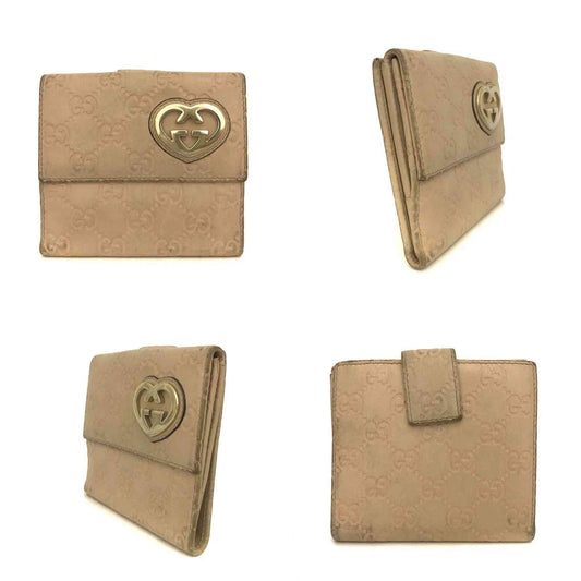 GUCCI Ssima Lovely Heart GG Logo Leather Bifold Wallet Beige