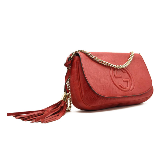 GUCCI Pebbled Calfskin Medium Soho Flap Crossbody Red
