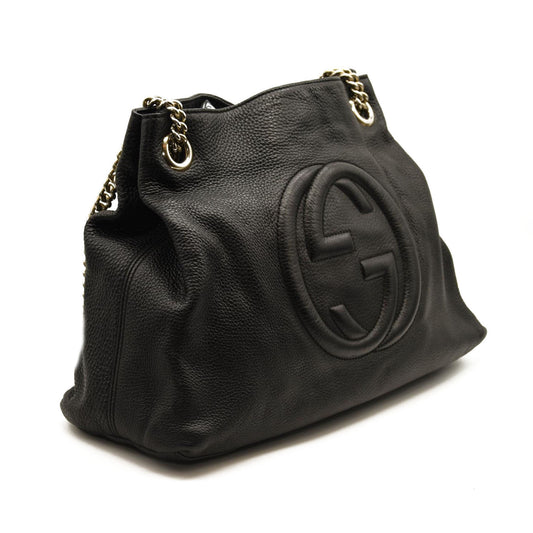 GUCCI Pebbled Calfskin Medium Soho Chain Shoulder Bag Black