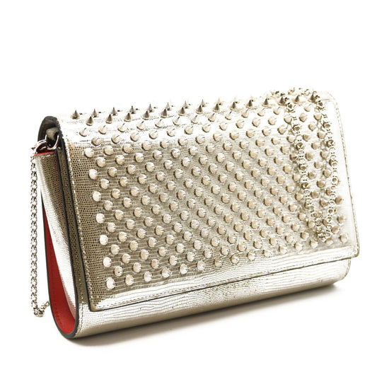 CHRISTIAN LOUBOUTIN Paloma Clutch Bag Silver Leather