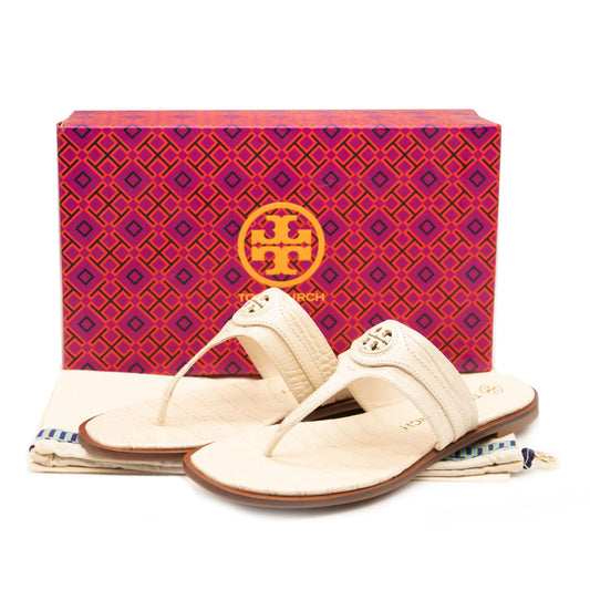NEW $248 TORY BURCH OFF WHITE NEW CARSON THONG WELT CROC SANDALS US 9