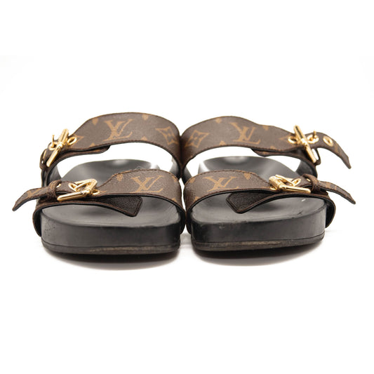 USED $1090 LOUIS VUITTON Monogram Bom Dia Mule Sandals 38 Black