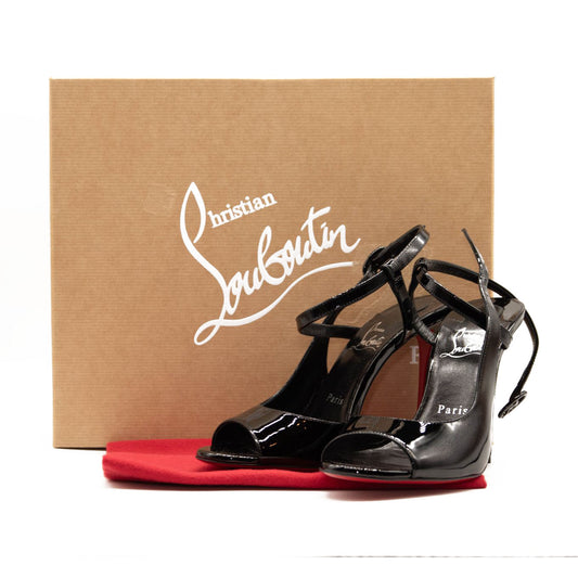 Christian Louboutin Astrid Slingback Sandal EU 37.5 Black Patent Heels Pumps