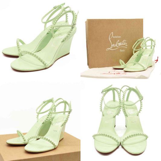 CHRISTIAN LOUBOUTIN Calfskin So Me Spike 85 Wedge Sandals US 7.5 Green