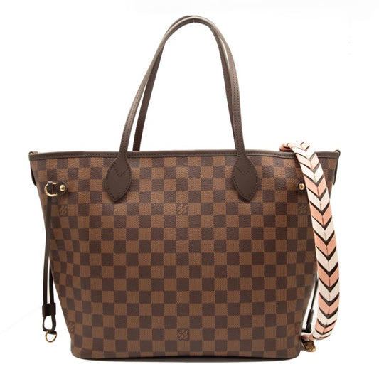NEW Louis Vuitton Braided Strap Neverfull MM Pink Rose Ballerine Damier Ebene Tote
