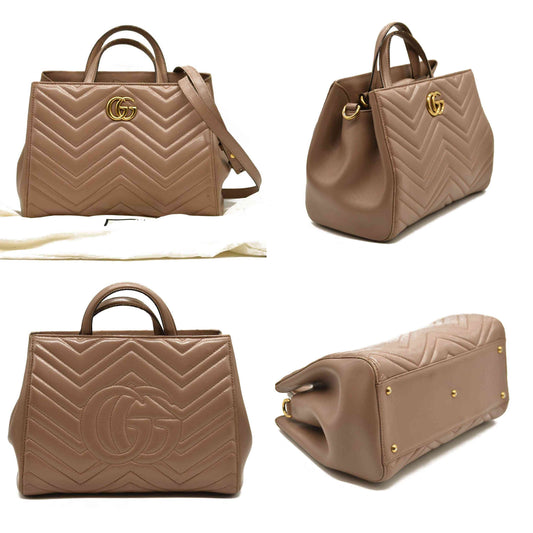 Gucci Calfskin Matelasse Small GG Marmont Tote Porcelain Rose Nude