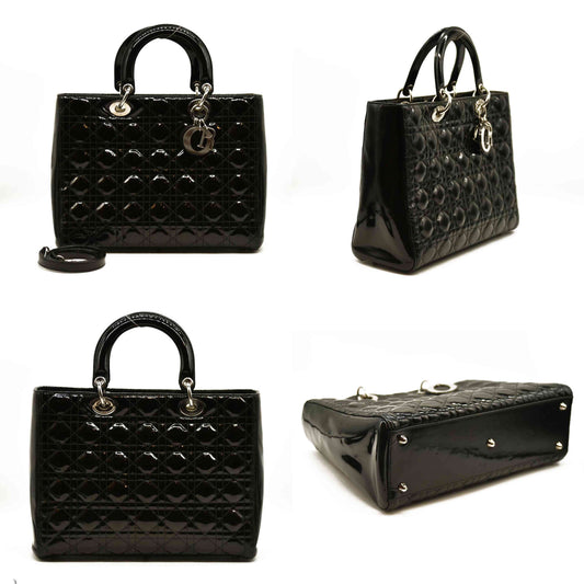 AUCTION $7000 Christian Dior Patent Cannage Large Lady Dior Black