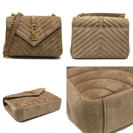 Saint Laurent Suede Matelasse Chevron Monogram Medium College Bag Dark Beige
