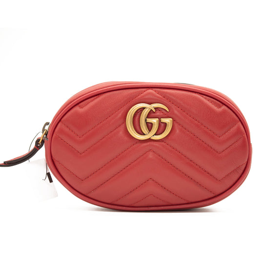 NEW GUCCI $1300 Calfskin Matelasse GG Marmont Belt Bag 85 34 Hibiscus Red