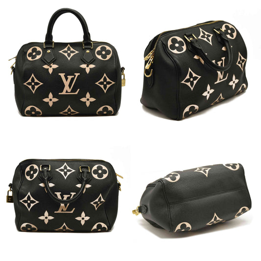 LOUIS VUITTON Empreinte Monogram Giant Speedy Bandouliere 25 Black Beige RFID