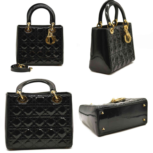 CHRISTIAN DIOR Patent Cannage Medium Lady Dior Black