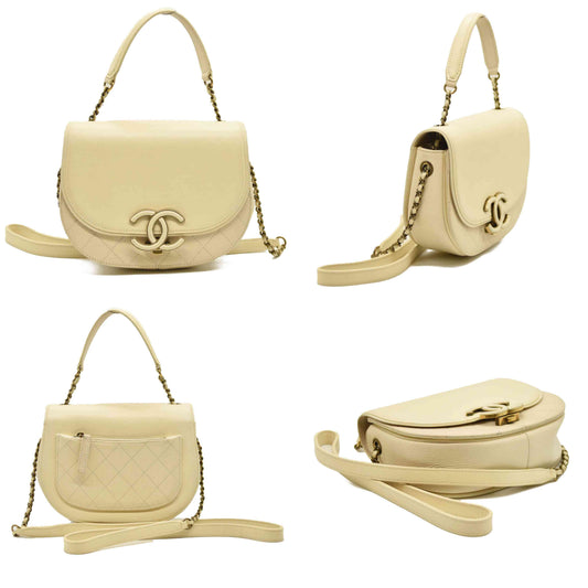 Chanel Shiny Calfskin Goatskin Quilted Small Coco Curve Messenger Flap White
