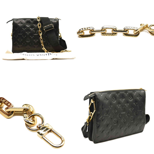 LOUIS VUITTON Lambskin Embossed Monogram Coussin PM Black