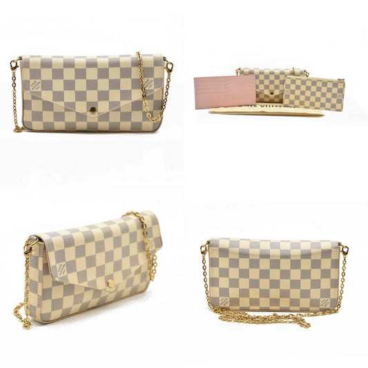 LOUIS VUITTON Damier Azur Pochette Felicie Chain Wallet Rose Ballerine MI0178