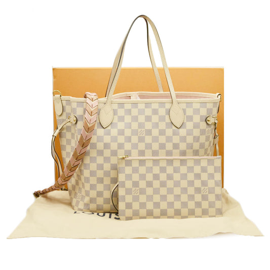 LOUIS VUITTON Damier Azur Braided Neverfull MM Pink