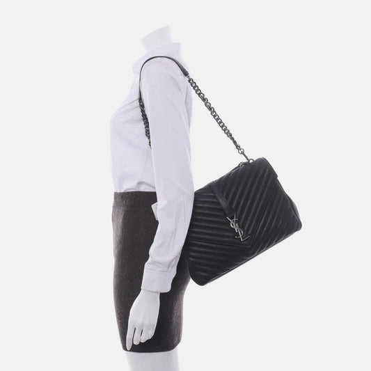 SAINT LAURENT Sheepskin Matelasse Chevron Monogram Large College Satchel Black