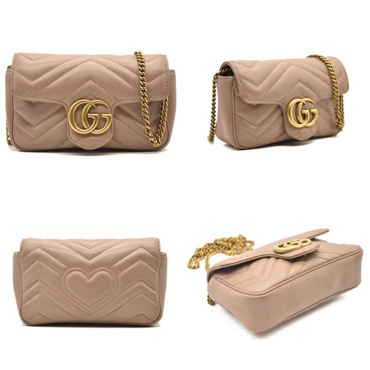 GUCCI Calfskin Matelasse Super Mini GG Marmont Shoulder Bag Porcelain Rose