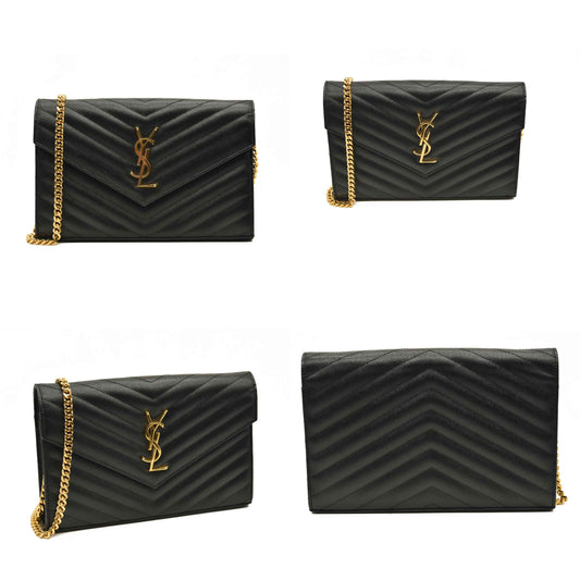 SAINT LAURENT Grain De Poudre Matelasse Chevron Monogram Chain Wallet Black