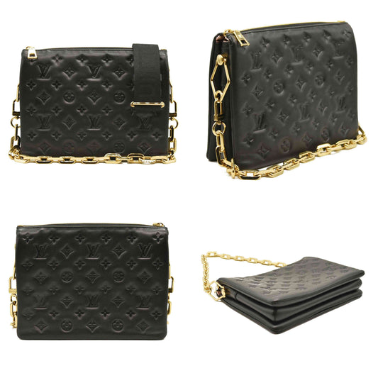 LOUIS VUITTON Lambskin Embossed Monogram Coussin PM Black