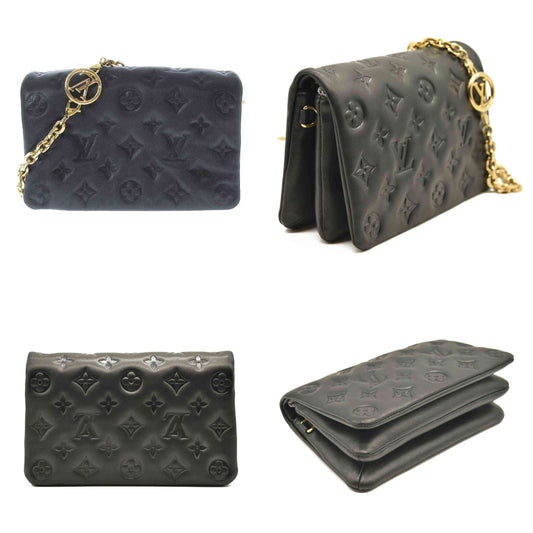 LOUIS VUITTON Lambskin Embossed Monogram Pochette Coussin Black